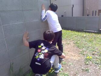 6年生は昼休みに、鬼ごっこをしていました。鬼が来ているかどうか、様子を探っているようですね。2人で隠れたら、居場所が気付かれてしまうのでは...。頑張って逃げ切ってください!! (6-2広報委員:ニックネーム考え中)