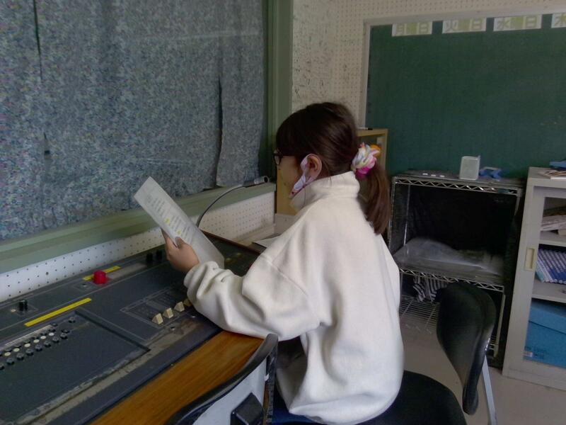 六年生と五年生が協力しながら放送委員の仕事をしていました。