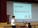 今日は,6月の全校朝礼と明日行われるミニバスケットボール教室の壮行会が行われました。