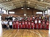 ミニバス壮行会では,練習の様子と試合を全校児童の前で実演しました。
