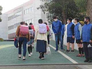あいさつする児童の声はいつも以上に 元気で、響く声です。