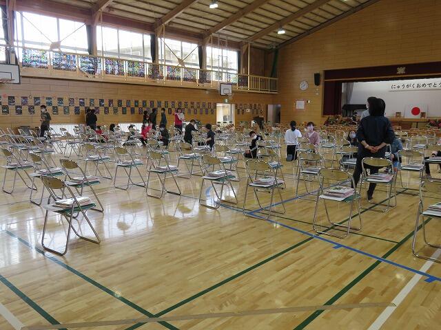 子供たちは、必要な用具を持って移動します。今は慣れる時期でもあり、蔓延防止等重点措置の中ですので、対面での会話やスタンツはできません。