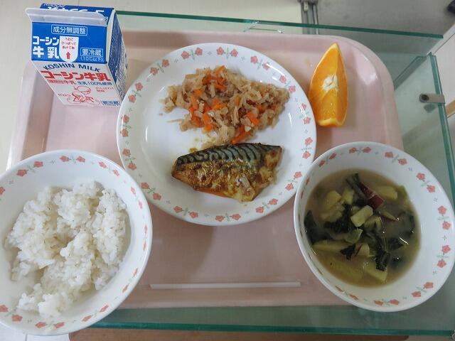 今日の給食のメニュー。かき玉汁を食べていると、桜カットのにんじんを見つけました。いちょう切りが普通なので、なんだかうれしくなって写真を撮りました。