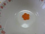 今日の給食のメニュー。かき玉汁を食べていると、桜カットのにんじんを見つけました。いちょう切りが普通なので、なんだかうれしくなって写真を撮りました。