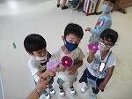 休み時間でも、体育の授業でも水筒を近くにおいて、運動するときはマスクを外すよう話しています。