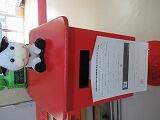 事務室前のポスト 度々登場のもーもーちゃん。しゃべりますよ。