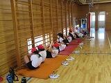 がんばる子供たちの様子。大休憩中の縄跳び板の周りで。4年生スポーツテスト指導。6年生家庭科裁縫。