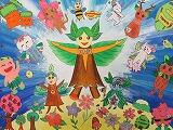 内容は、2021富勢小キャラクター大集合です。これが何と4m×4mのフラッグになり、県民プラザで展示