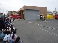 ちょうど西部消防署の機動隊が訓練に来ていました。放水もやってくれました。