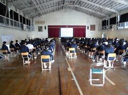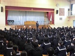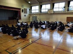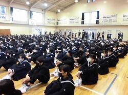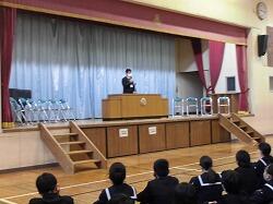 1年生が2学期の学期末集会を行いました。反省をしっかり聞いて、3学期の成長につなげましょう。