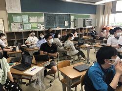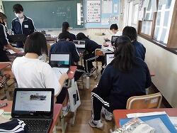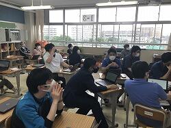 午前はオンライン配信、午後はクラス全員でオンライン授業を行っています。みんな熱心に取り組んでいます。