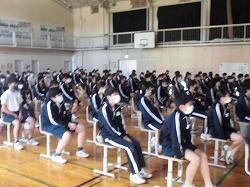 保護者の皆様、ご協力ありがとうございました。無事に終業式を終えることができました。明日から44日間の長い夏休みになります。感染症対策、熱中症対策をして、充実した夏休みになるようご指導お願いします。
