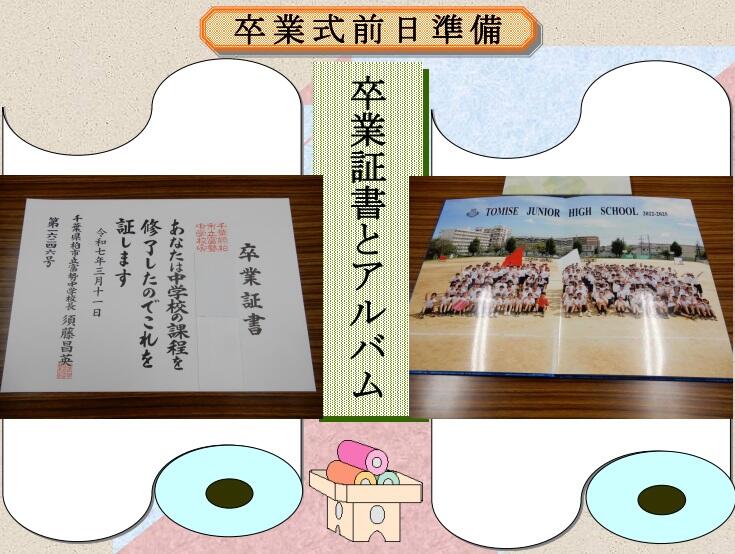 〇昨日の午前中、先週の卒業式にインフルエンザ感染したことで列席できなかった卒業生一人の「卒業証書授与式」を教室で行ないました。同じ学級の生徒も大勢参列し、私から卒業証書を手渡しました。