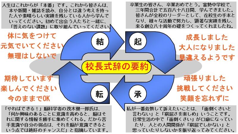 〇私の話の中では、先日の卒業式で卒業生に送った言葉を引用します。