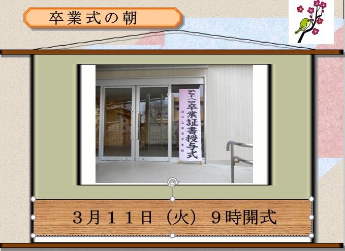 〇24日の令和6年度修了式まで、登校日は今日も含めて7日となりました。今日は初夏のような陽気になるとの予報ですので、サクラの開花のニュースもそろそろ聞こえてきそうです。