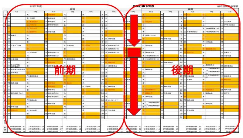 〇4月からの令和7年度の年間計画もほぼ固まりつつあります。その中で先月も少し書きましたが、従来からの一番の変更点が、「二期制(前期・後期)」への移行です。簡単に言えば、これまで1年間を一・二・三学期の3区分としてきたものを、2区分にするということです。