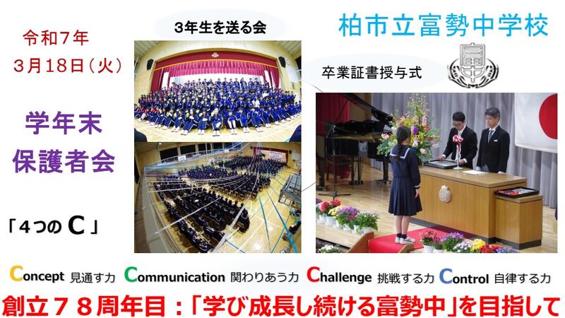 〇在任中の数々のご支援とご指導にあらためて感謝申し上げます。土中から富勢中のさらなる発展を祈念しております。ありがとうございました。