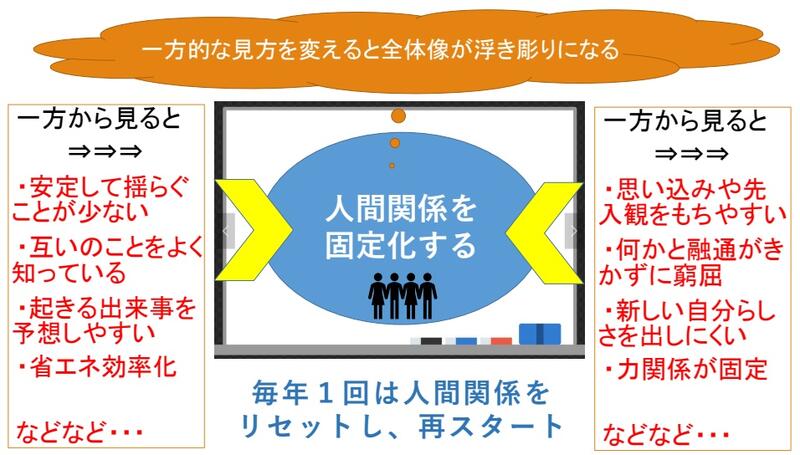 〇これは日本という世界からみると限られた集団社会で、長い間に自然と培われてきた偏見や先入観です。ただし、その偏見や先入観が悪いというわけではなく、一方では個人がその集団に適合していくためにはある面では必要なことだとも言えます。