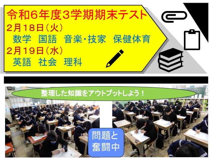 〇受験生は毎日、体調を整えつつ目前の入試に全力で取り組んでいます。確かにこの寒い時期にある受験は大変ですが、この経験は必ず後で役にたってきます。無事に実力を発揮することを願っています。