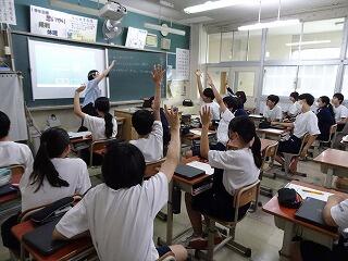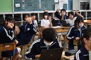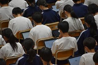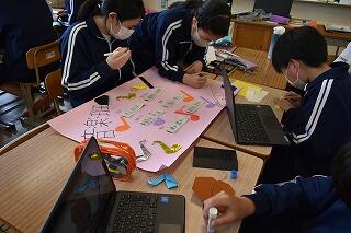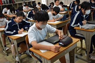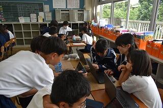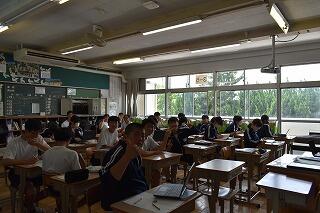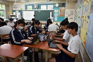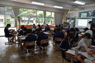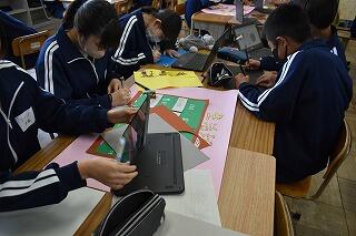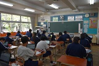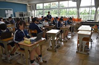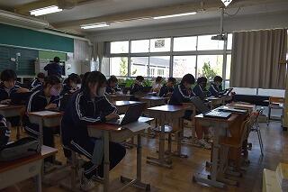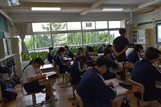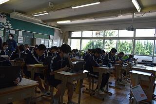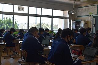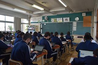 授業は変わらず,集中して取り組んでいます。タブレットを使ったり,生徒同士で対話や作業をしたりする姿がありました。