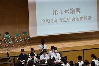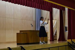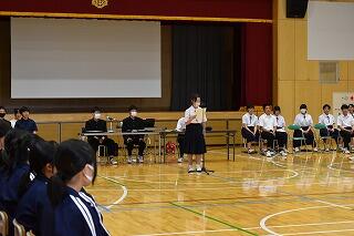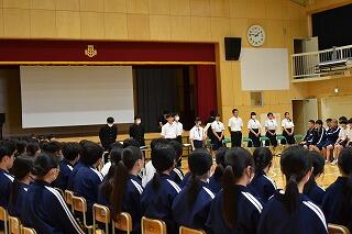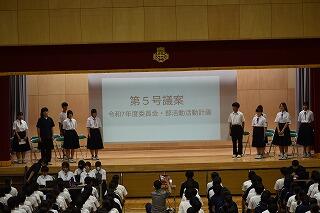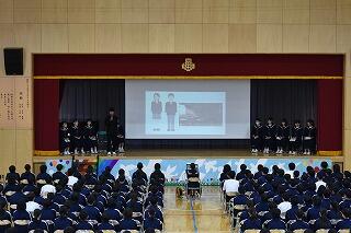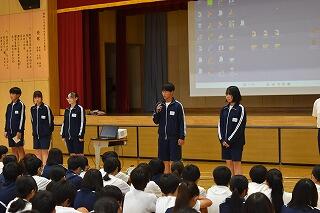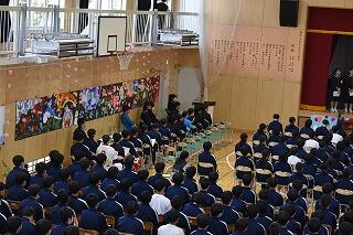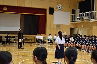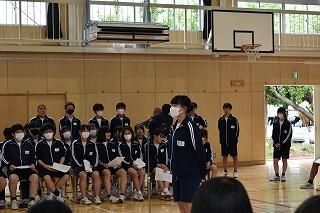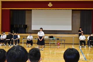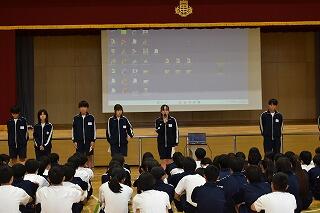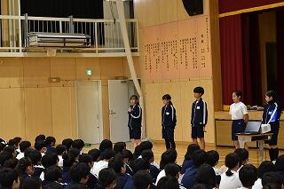 1年間務めた生徒会役員と各委員会の委員長からみんなへの感謝とこれからの協力の呼びかけがあり,それを受けて新しく任命された生徒会役員と委員長から決意表明がありました。