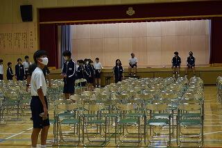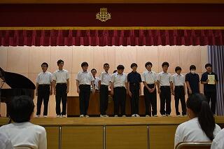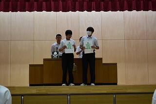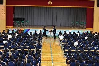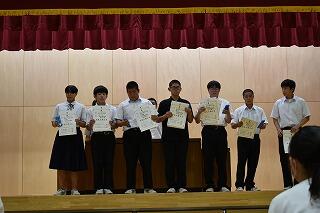 3学年揃うのはこれが最後ということもあり,予行後に表彰を行いました。