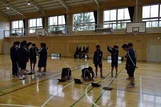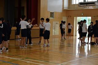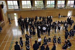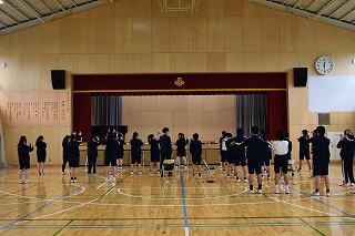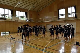 初めての練習で,礼や姿勢,拍手のタイミングなどを合わせました。