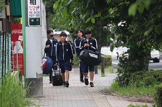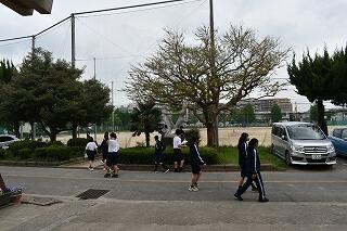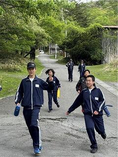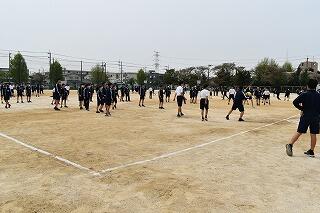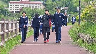 朝早くから富勢中に集合した選手たちは,各スタート地点に到着し,アップを始めています。