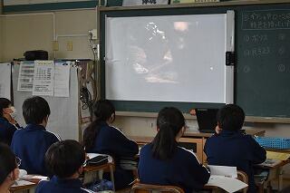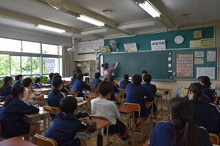 理科ではイカの解剖,帰りの会では体育館で合唱練習を行っています。