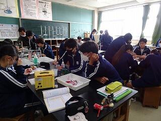 理科の授業は,実験を行っています。班で協力しながら進めていて楽しそうです。