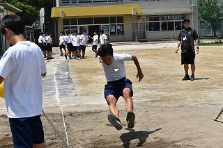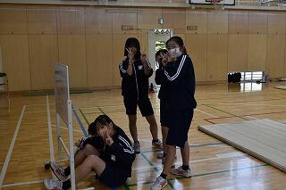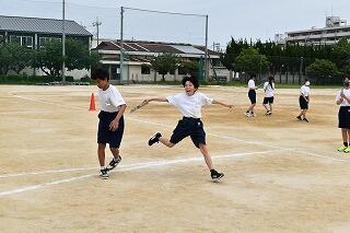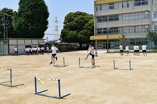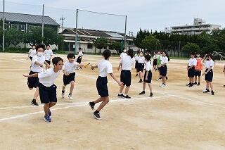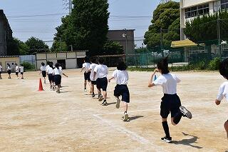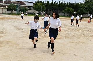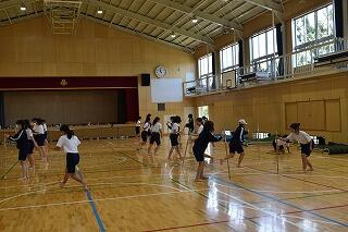 2年生の体育では,外周を走ったり,バドミントンや卓球をしたりしました。
