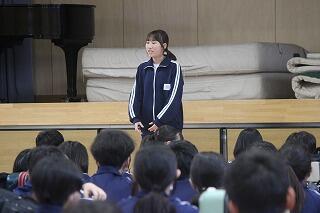 3年生より,1・2年生へ3年生を送る会のお礼メッセージが渡されました。