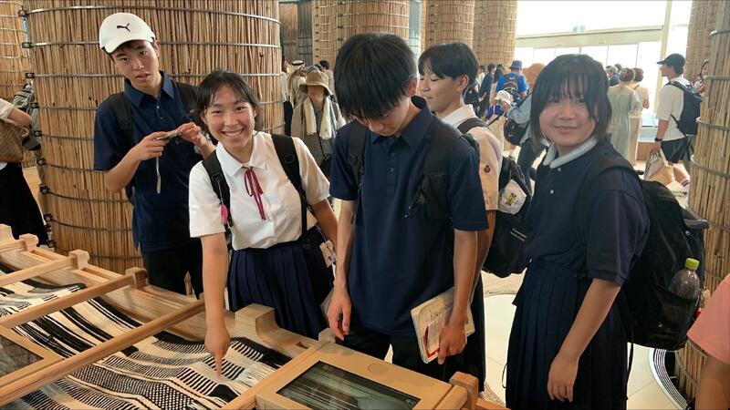 2年生は美術の授業で作成したTシャツを着て,ファッションショーを開催しました。