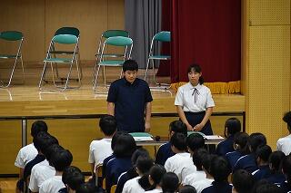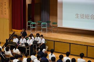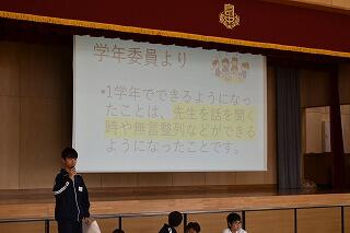 各学年の代表と生徒会長からこれまでの良かったところ・課題などの話がありました。
