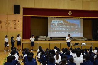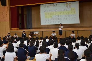 全委員会が目標を立て,3年生へのステップアップのために生活を見直しています。