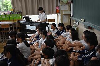 他のクラスと歌声を披露し合う交換会も行われており,良い点やもっと良くなる点を確認しています。