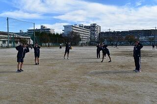 外での活動はとても大変ですが,体育では校庭でサッカーやバスケットボール,持久走をしています。