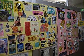 生徒や先生が作成したものなどが様々な場所に貼られています。