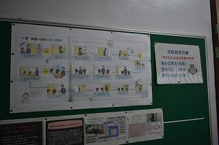 学校の廊下や教室には,ポスターやお知らせなどが掲示してあります。