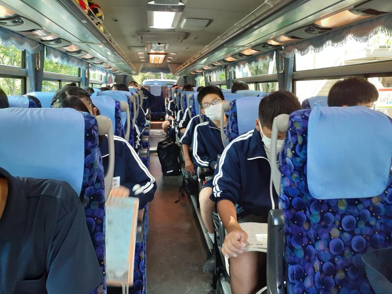 ○生徒の三日間の様子をほぼリアルタイムで配信していきます。バス五台が到着しました。朝は快晴です。