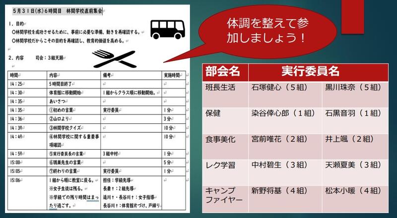 5月31日(水)2学年林間学校前日指導