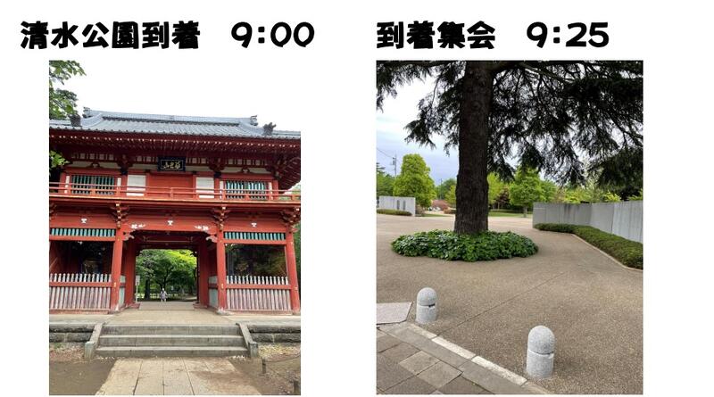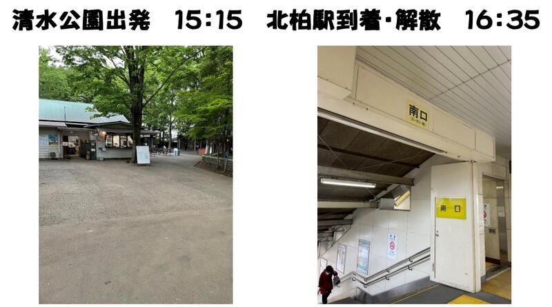 1 北柏駅から清水公園までの往復の班行動では、マスク着用は電車内のみとする。また外を歩く際に帽子をかぶるように指導する(可能であれば首に冷却タオルやハンディの扇風機なども持ってきてよい)