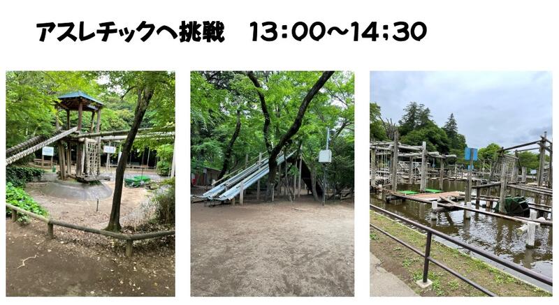 3 約1時間のアスレチックのコースは3つあり、そのうちの2つ(冒険コース、チャレンジコース)はほぼ木陰になっている。残りの水上コースは日なたであるが、体力に自信のある生徒のみ(希望者)とする。他の生徒は木陰で実施することになる