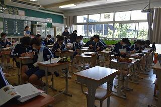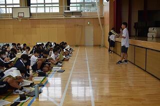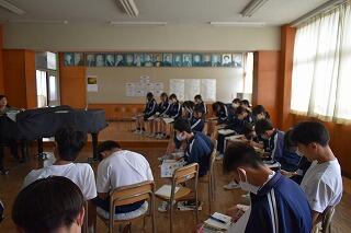 3学年揃うのはこれが最後ということもあり,予行後に表彰を行いました。