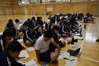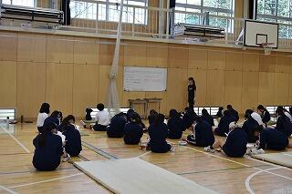 初めての練習で,礼や姿勢,拍手のタイミングなどを合わせました。