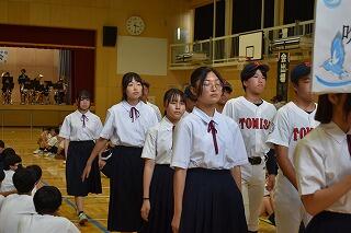 礼儀作法や入場・退場の仕方など,生徒が主体となって練習をしていきます。
