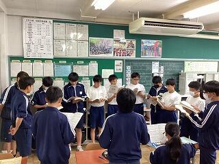 3年生は武道場で合唱の練習です。