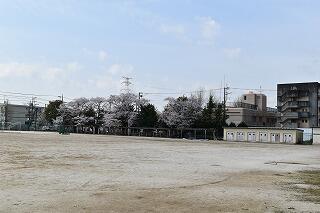 北側のテニスコートや中庭には雪が残り,マンホールは凍っていました。