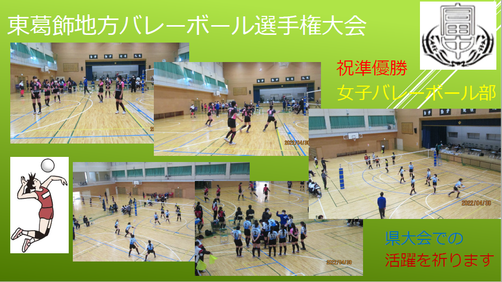 〇昨日と今日、東葛飾地方バレーボール選手権大会が行われ、女子バレーボール部が準優勝という見事な活躍でした。