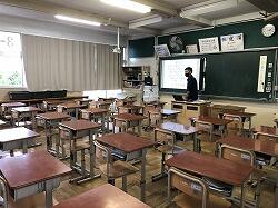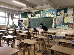 午前はオンライン配信、午後はクラス全員でオンライン授業を行っています。みんな熱心に取り組んでいます。